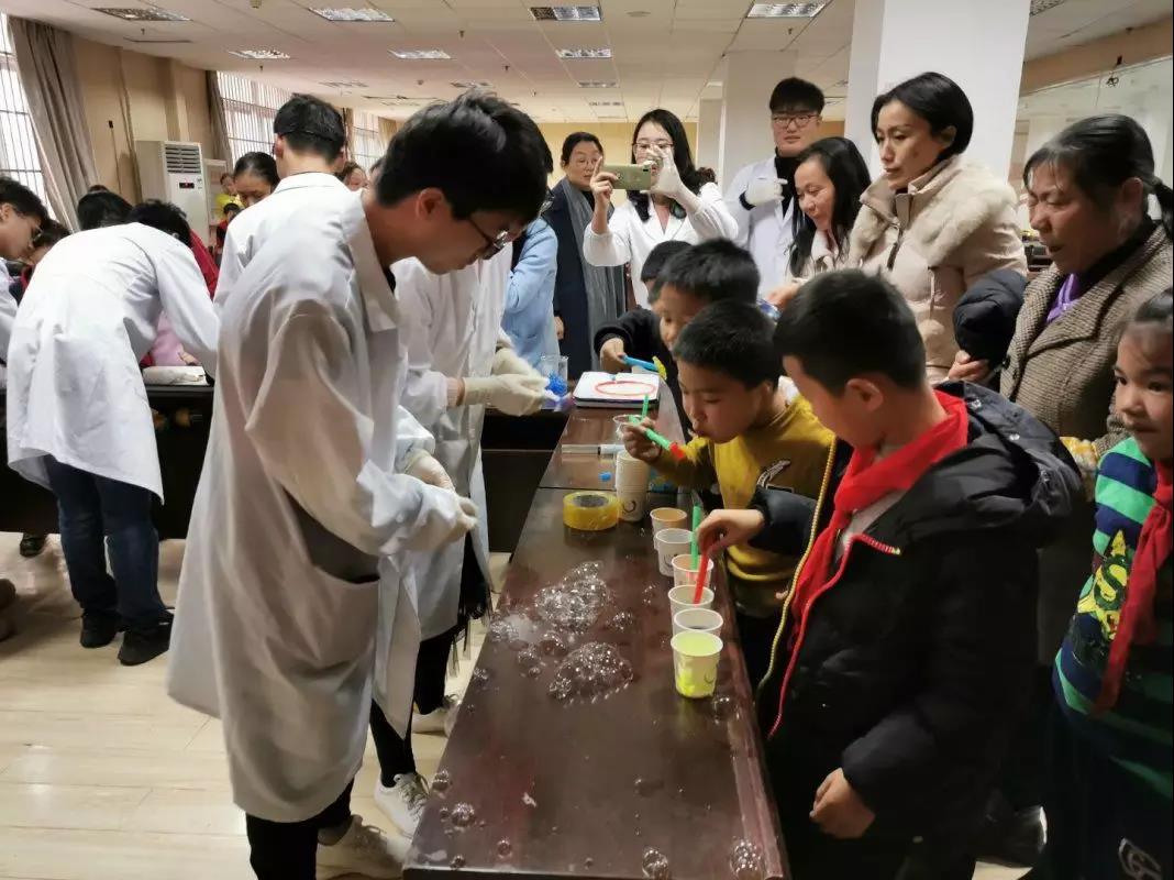 本科生化学系第一党支部在支部书记陈文婷的带领下,将“身边的化学”科普志愿服务带进左岭新城朝阳社区党员服务中心,百余名当地小学、幼儿园小朋友在老师和父母的陪同下参与此次社区科普活动。