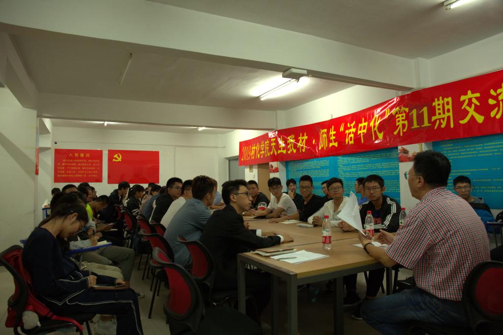 在南望山校区学习支持中心7号室举办第十一期天生我材•师生“话中化”交流活动,孟大维教授给2019级新生们带来了主题为“新环境,新目标,新担当,争做新时代材化人”的分享,与新生就学习、科研、生活和情感等各方面问题进行了亲切交流。