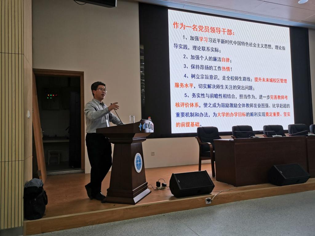 随后,副校长王华从未来城校区管理中的现状和问题出发,以守初心、担使命为指南,详细介绍了他在未来城校区管理与服务工作中找差距、抓落实的过程,同时,深刻剖析了未来城校区管理工作中的不足之处,明确了未来城校区管理的努力方向与工作重点。他指出,“树立宗旨意识,走全校师生路线”,落实到未来城校区的发展上,就是提升未来城校区管理服务水平,切实解决师生关注的突出问题。