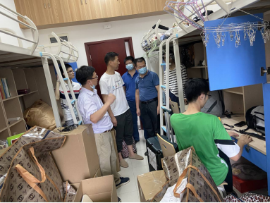 搬迁过程中,学生干部充分发挥带头作用,男生积极主动帮助女生,学院领导、院直老师、班主任、学务指导老师到现场指挥并协助学生搬运行李。