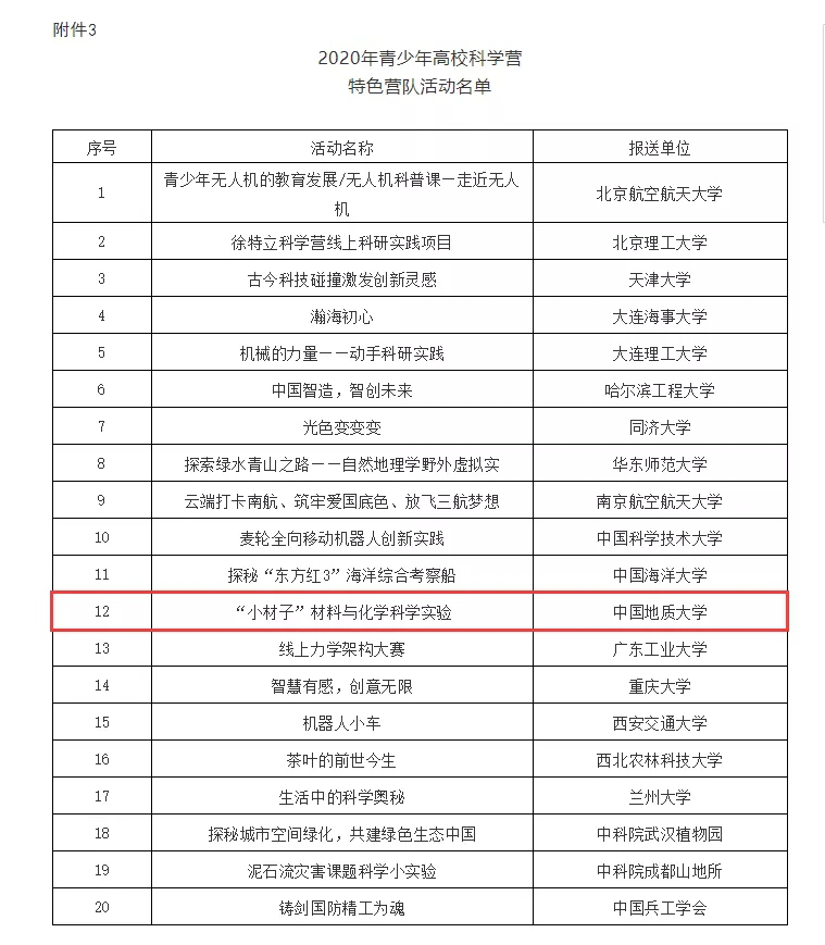 的科学实验被评为“2020年青少年高校科学营特色营队活动”。