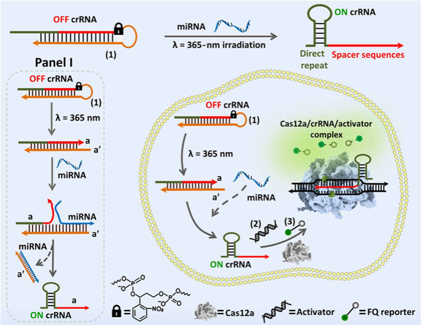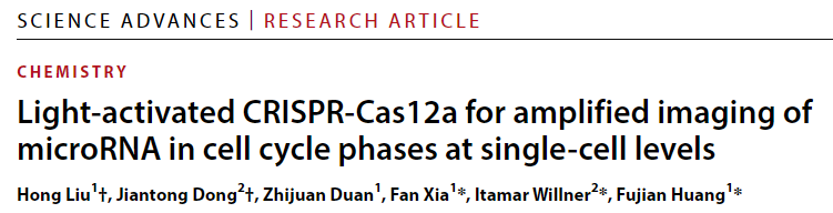 近日,韦德体育官网 夏帆教授/黄福建教授课题组在光激活CRISPR系统高效单细胞miRNA成像研究方面取得进展,相关研究成果以“Light-activated CRISPR-Cas12a for amplified imaging of microRNA in cell cycle phases at single-cell levels”发表于Science Advances (Sci. Adv. 2024,10, eadp616。 微小RNA(miRNA)是一类小的非编码RNA,它的异常表达与各种疾病的发生和发展密切相关,可作为癌症诊断、预后、进展和复发的生物标志物。然而,细胞内的miRNA含量很低,因此需要开发信号放大的miRNA检测方法。传统的miRNA检测方法,如实时荧光定量PCR(RT-qPCR)和滚环扩增(RCA),虽有较高的灵敏度,但在单细胞水平上的检测和成像仍存在挑战。 夏帆教授/黄福建教授课题组在前期光响应功能核酸生物传感研究基础上,发展了一种新的光激活CRISPR系统用于活细胞中miRNA-21的信号放大检测及其成像。该系统在单细胞水平上实现时空选择性激活,以评估miRNA-21在不同细胞周期阶段的相对表达水平,从而绘制单细胞阵列中不同细胞周期阶段的miRNA-21含量分布图。该方法为深入研究不同细胞周期中miRNA的功能,从miRNA水平上分析细胞周期调控的新机制提供了一种有力的分析手段。 该研究工作中国地质大学(武汉)博士生刘红为论文的第一作者。希伯来大学Itamar Willner 教授、中国地质大学(武汉)夏帆教授和黄福建教授为本文的共同通讯作者。该工作得到了国家自然科学基金重大项目,国家重点研发计划以及中-以国际合作等项目资助。(编辑:黄福建 审稿:梁本哲) 论文链接://www.science.org/doi/full/10.1126/sciadv.adp6166