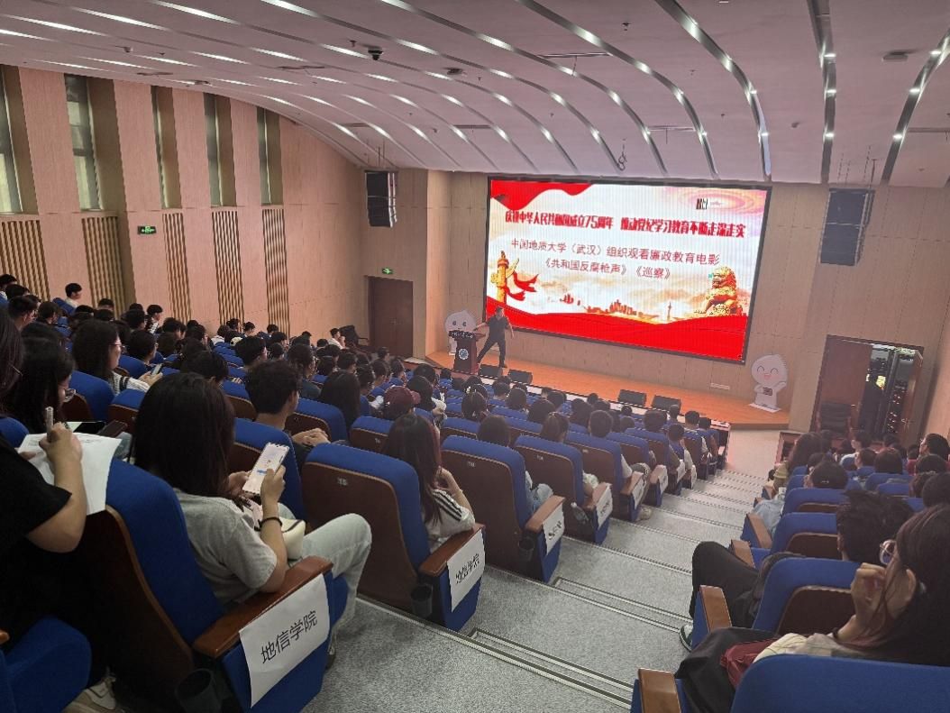 为了庆祝中华人民共和国成立75周年,推动党纪学习教育不断走深走实,9月27日下午两点,韦德体育官网 、环境学院、地理与信息工程学院在未来城校区共同组织师生党员“红色观影”,集中观看《共和国反腐枪声》《巡察》两部廉政教育电影。 电影《共和国反腐枪声》以建国之初抗美援朝长津湖战役为背景,讲述了中华人民共和国检察署第一任常务副检察长李六如受党中央、毛主席委托,督办共和国第一反腐大案的历史往事。电影中的主人公李六如是湖南平江人,参加过辛亥革命,是平江县第一个共产党员。新中国建立后,他成为新中国检察工作主要奠基人之一,为检察工作和法治建设作出了重要贡献。电影中李六如同志的一言一行维护了国家的利益,同时也让我们看到了廉洁的内涵。这部电影记录了共和国法治进程,弘扬社会主义法治文明,展现了老一辈革命家追求信仰、直面真理、淡泊名利的高尚情操,是反腐题材不可多得的佳作,更是一部预防犯罪的警示教育影片。 电影《巡察》是全国首部巡视巡察类题材电影,该电影以平实质朴的表现形式,讲述了巡察干部在基层工作中面临的种种困难。通过为“老上访户”沈春菊一家解决危房补助款的问题为切入口,直面农村小微权力中的腐败和不正之风。影片中市委提级巡察赵家峁村的过程中,巡察干部发现并解决了该村干部的“微腐败”、“一言堂”、“不作为”等问题,最终使该村党组织重获凝聚力和战斗力,带领村民彻底脱贫。这部电影带给我们极大的启示作用:影片生动再现了新时代巡察干部“忠诚、干净、担当”的精神追求和行为风范,展示了巡察工作在党内监督中的重要作用。巡察干部以高度的责任感和使命感,解决了群众的实际问题,同时也告诫和警示广大党员干部要严守纪律底线,保持清正廉洁的政治本色。 韦德体育官网 50余名师生党员参加此次观影,观影后均深受教育,一致表示,作为新时代党员,应以革命先辈先烈为榜样,传承党的优良作风,自觉加强道德修养锻炼,时刻保持头脑清醒,不断提升自己的廉政意识,树立正确的人生观和价值观,切勿让自己因为一时的“小恶”和贪念,而在违法犯罪的路途中踏出了第一步。(编辑:秦威娅,李晓晔 审核:梁本哲)