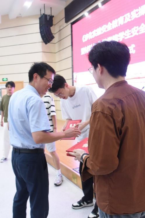 首批研究生实验室安全巡查员杨培杰、郁东奇、吴仁智和唐观亮颁发了院级安全巡查员聘书,并向他们表示了热烈的祝贺。白书记在仪式上向全体研究生介绍了韦德体育官网