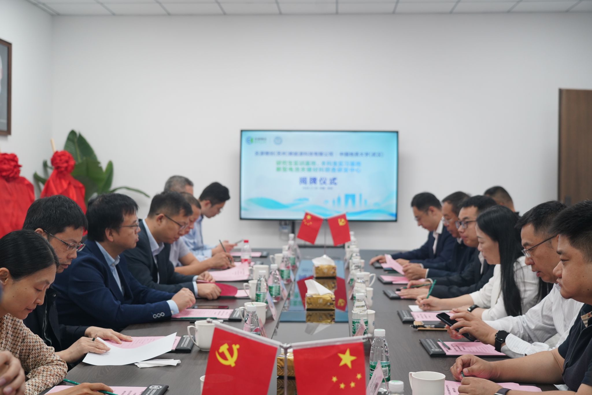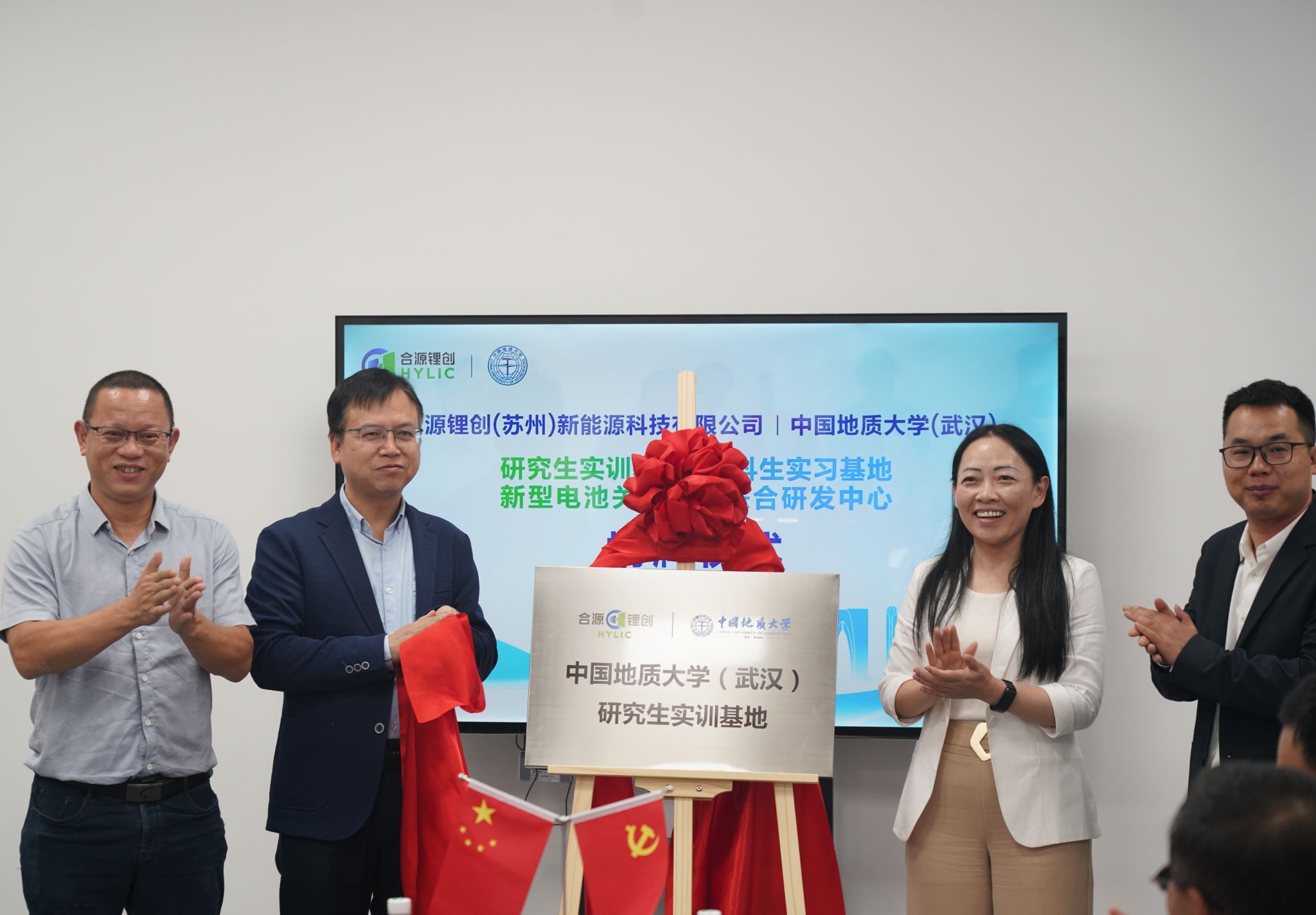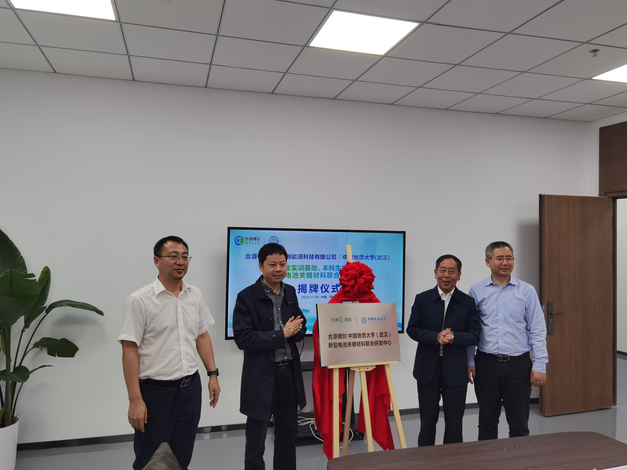 座谈会结束后,学校、企业、管委会三方代表共同为“新型电池材料联合研发中心”、“本科生实习基地”和“研究生实训基地”揭牌。