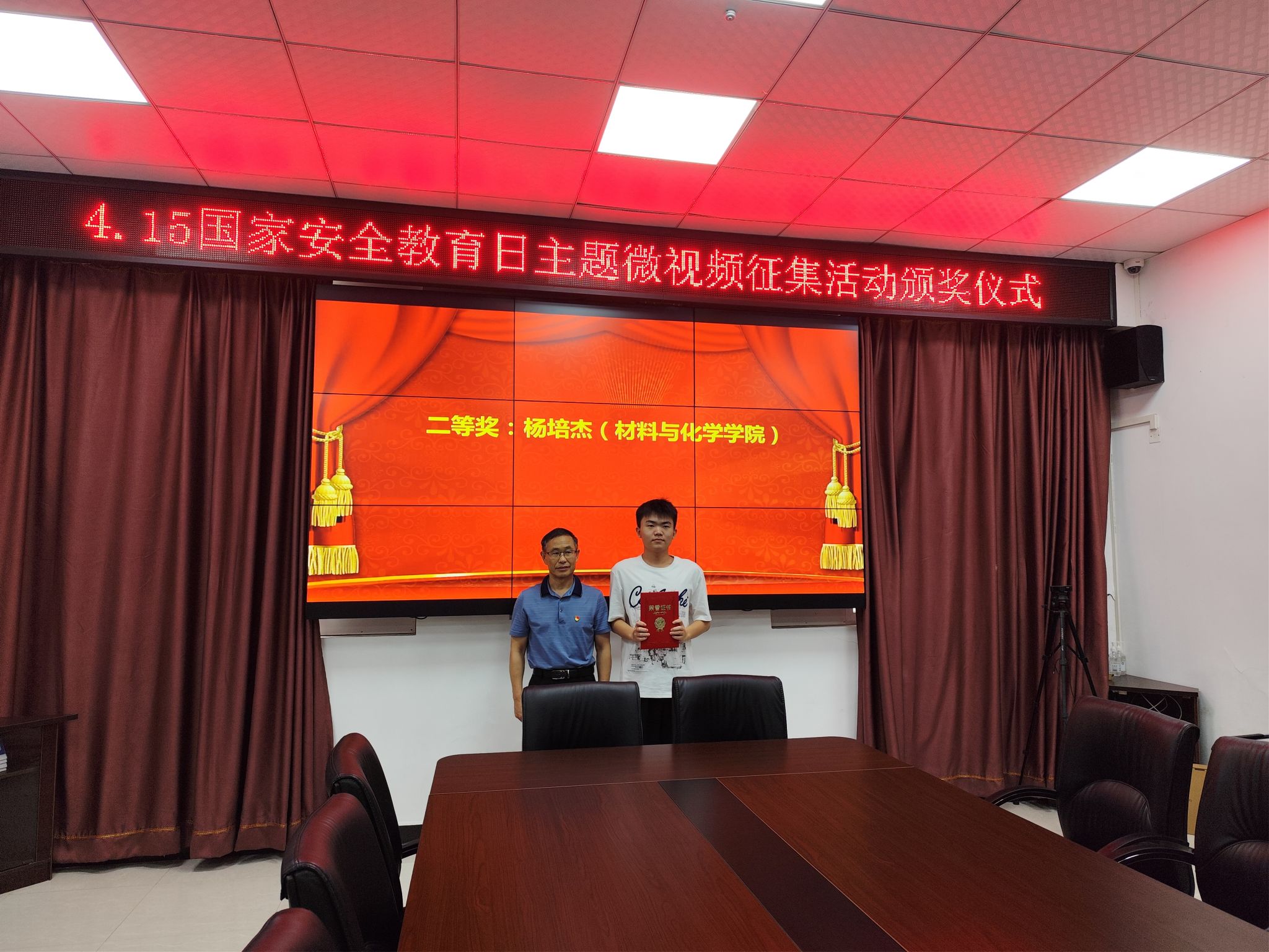 6月27日下午,我校4.15全民国家安全教育日微视频征集活动颁奖仪式在安全保卫部举行。由韦德体育官网 刘浴辉和张丽琪老师共同指导、2023级研究生杨培杰团队提交的主题微视频《实验室安全》获评校级二等奖。 2024年是习近平总书记提出总体国家安全观10周年,4月15日是第九个全民国家安全教育日。增强研究生实验室安全意识是践行总体国家安全观的重要体现。学院积极响应我校组织的4.15全民国家安全教育日微视频征集活动,在刘浴辉和张丽琪两位老师的共同指导下,韦德体育官网 2023级研究生杨培杰团队,从剧本的创作、演员的确定、场景的设计、拍摄和剪辑等方面通力合作,克服了时间短、任务重的困难,高质量完成并提交了主题微视频《实验室安全》。本作品在评选过程中,得到了评委们的一致好评,最终获得校级二等奖,这也是本年度全校最好成绩。 本次微视频制作的全过程得到了学院学工和安全巡查工作组的大力支持,教学实验中心为拍摄工作提供了平台保障。通过本次活动,在师生中掀起了一股学习总体国家安全观的热潮,师生的安全意识得到进一步加强,主动参与安全知识学习的积极性获得了进一步提升。