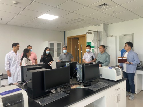 教学实验中心,王华校长仔细询问了实验室管理及建设工作,现场查看了有机化学实验室、分光光度计室、材料性能表征实验室的具体运行与建设管理。学院党委书记黄菊、学院副院长公衍生、教学实验中心主任夏开胜、中心支部书记周森老师汇报了有关情况。