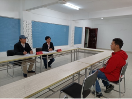 副院长周炜主持选拔活动。学院党委副书记余江涛致欢迎辞,他代表学院向中科院理化所各位老师的到来表示热烈欢迎,并希望以此次“材化菁英班”选拔为契机,深化优势合作,共同提高本科生培养质量,把立德树人落在实处,为国家与社会培养高质量人才。中科院理化所教育处副处长丁黎老师对地大师生的热情欢迎表示感谢,同时表达了希望同中国地质大学(武汉)进一步深化合作的美好期待。