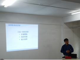 中科院理化所邱波老师向同学们详细介绍了理化所整体情况,希望同学们运用雄厚的师资力量以及材料、化学专业的研究方向加快学习发展。