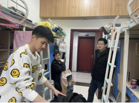 党委书记黄菊、党委副书记余江涛、副院长周炜和学工组全体辅导员老师分组深入到学生寝室,看望慰问春季开学返校的学生。