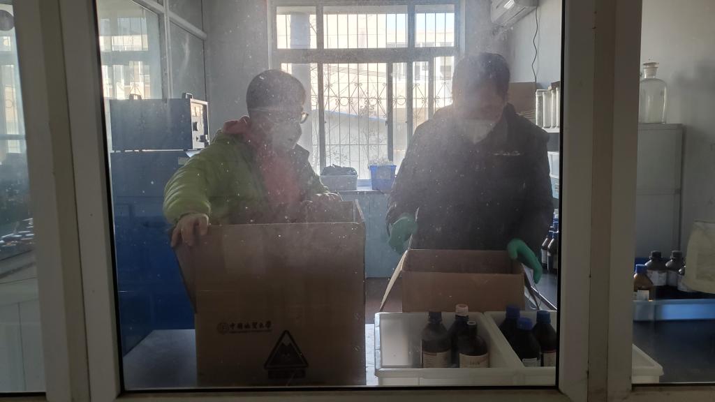 上午10时,该院副院长李国岗、实验中心党支部书记周森,中心党员教师曹菱来到南望山校区的大学化学教学实验中心。他们戴着口罩做好防护,小心翼翼地把一瓶瓶酒精搬到车上。这些酒精是学院开展教学实验、科研实验的必备物品,也是日常消毒卫生的重要用品,可根据不同浓度施用。