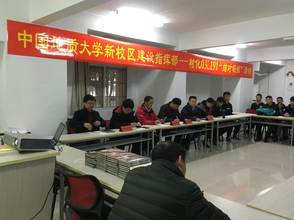 03L191班“结对领航”活动。11月27日下午开展专题教育活动,新校区建设指挥部副指挥长李鹏翔,党支部书记邓云涛等领导老师,韦德体育