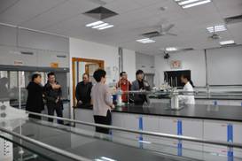 公衍生一行还考察了厦门大学化学国家级实验教学示范中心,该中心主任任艳平教授、实验中心党支部书记方雪明等老师进行了细致全面的讲解。大家深入基础化学实验室中的无机与分析化学实验室、有机化学实验室、物理化学实验室和仪器分析实验室进行考察交流,学习了解实验室建设和管理经验。大家就实验室实现的“三位一体”三级管理模式、以二维码为代表的信息化便利化服务方式、化学药品试剂的管理方式和实验中心技术队伍建设管理进行了深入交流,就该实验中心安全、规范、高效服务管理制度措施进行了热烈探讨。