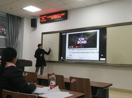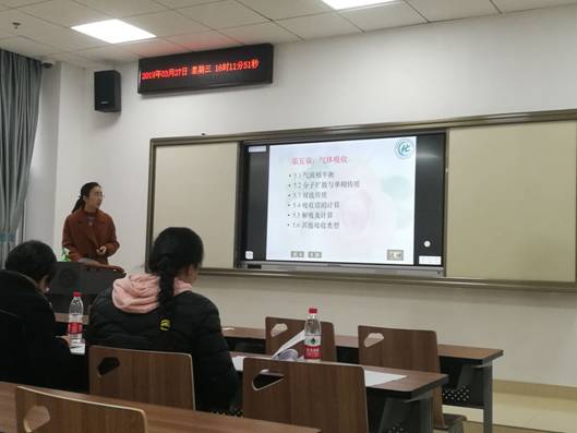 14点40分比赛正式开始,六位参赛教师按抽签顺序依次进行课堂讲授,讲授时间为20分钟。参赛教师各有特点,讲课内容深入浅出,精彩纷呈。孙玉宝老师的《物理化学》选段讲解精准、思路清晰;张运丰老师的《有机化学》选段内容丰富、信息量大;马亮老师的《无机化学》选段重点突出、启发性强;贺贝贝老师的《化工原理》选段目标明确、条理清楚;王欢文老师的《物理化学》选段理论联系实际、紧贴学科前沿;李静老师的《大学化学A》选段故事性强、风格突出、教学效果好。评委们从参赛教师的教学设计方案、教学内容、教学组织、语言与教态、教学特色等方面进行评分,并对各位参赛教师存在的问题进行了点评。