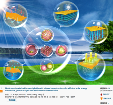 李珍教授团队刘学琴副教授与美国佐治亚理工林志群教授(地大学者-柔性引进人才)在《Energy & Environmental Science》(影响因子:29.518)上发表的综述文章《Noble metal-metal oxide nanohybrids with tailored nanostructures for efficient solar energy conversion, photocatalysis and environmental remediation》(中国地质大学为第一通讯单位)入选ESI全球TOP0.1%热点论文(Hot Papers)。这是我校材料科学与工程学科论文首次入选ESI全球TOP0.1%“热点论文”。