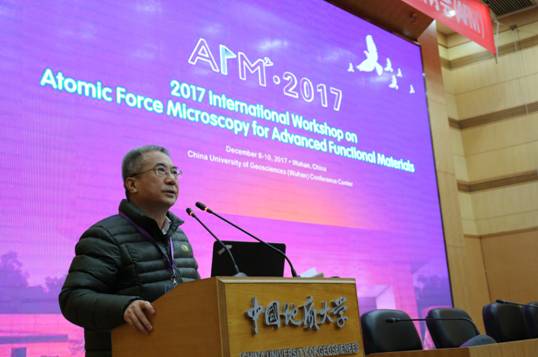 12月8日-10日,2017先进功能材料与原子力显微技术国际研讨会(AFM2)在我校举行。来自加州大学伯克利分校、华盛顿大学、橡树岭国家实验室、阿贡国家实验室、罗格斯大学、澳大利亚国立大学、新南威尔士大学、新加坡国立大学、新加坡南洋理工大学、阿威罗大学等国外著名高校的30余位境外代表以及来自清华大学、北京大学、南京大学、中国科技大学、中国地质大学等国内知名高校的专家学者共计350余人参加了此次研讨会。中国硅酸盐学会谭抚副秘书长、湖北省科技厅高新处戴新明处长应邀出席大会。
