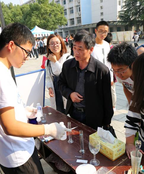 (通讯员:白振洋、梁雪莹)11月2号下午,秋高气爽,阳光明媚,中国地质大学(武汉)第十二届“Chemistry Show-身边的化学”实验展演在主楼前拉开帷幕。本次展演主题为“创新成就美好生活”。校党委宣传部部长喻芒清、学生工作处处长王林清、教务处副处长吕占峰、实验室与设备管理处副处长段平忠、校团委游萌,院党委书记吴太山、党委副书记黄金波、副院长周俊、院长助理、实验教学中心主任公衍生、各团队指导老师及学工组全体老师应邀出席开幕式。17级285余名本科生及附属小学100余名中小学生参加此次展演活动。展演开幕式由院学生会主席韩冰主持。