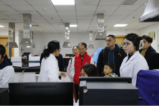 在学院实验教学中心主任周森老师的引导下,李忠荣校友一行参观学院分析测试中心与教学实验室。周森老师详细介绍设备条件与科研成果,李忠荣校友高度肯定学院科研实力,勉励学生珍惜资源、夯实专业基础,投身创新实践。