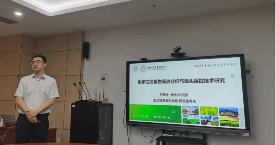 王新全所长为学院师生作了题为《化学性危害物高效检测与防控技术研究》的学术报告。他深入介绍了浙江农科院近年来的发展情况,重点阐述了农产品质量安全与营养研究所在检测技术研发与应用、手性农药安全性评价、化学阻控技术研究等前沿领域的最新研究成果。