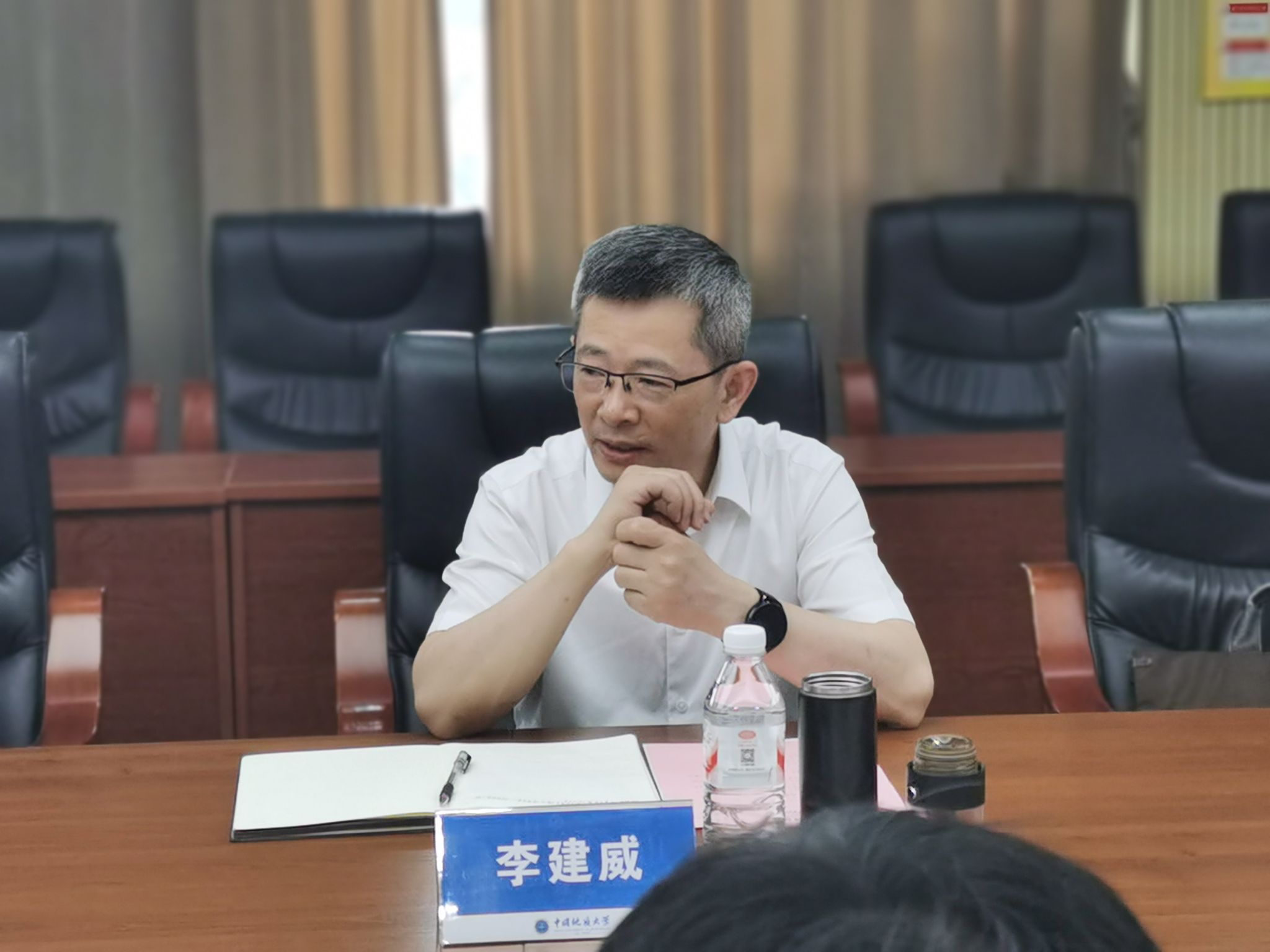 李建威校长总结讲话。他充分肯定了学院近年来建设发展取得的成效,他指出,学院班子团结协作,能够积极主动谋划学院长远发展,依托学科特色,以国家级人才为核心着力打造科研团队并在材料与化学领域形成较好的优势,近年来人才培养、对外合作也不断取得新突破新成绩。针对下一阶段工作,对学院提出五点要求:一是紧紧抓住人才培养这个中心任务,传承和发扬好地大教书育人的好传统,立足怎样培养人、怎样培养更优秀的人,压实育人责任,创新工作机制,改革教学方式方法,将思政教育引领贯穿到育人全环节,不断提升育人水平,着力培养德智体美劳全面发展的学生。二是要充分凝练学科特色,发挥专业优势,走内涵式发展和专精特发展之路,科学谋划科研方向和人才引育,结合国家战略需求和行业发展态势,结合“十五五”规划谋划,进一步优化学科定位,找准发展方向。三是要切实把人才优势转化为科研优势,要以地方经济发展和企业技术需求为导向,院领导带头组织老师们积极深入企业对接科技合作,同时要立足基础学科特性,不断提升原始创新能力。四是要努力打造一支师德高尚、有师德情怀、高水平的教师队伍,精准引育人才,要加强师德师风教育警示,教育引导广大教师特别是党员教师率先表率,在“三全育人”中当好学生引路人、学生思想塑造者。五是要压紧压实安全管理责任,突出抓好实验室常态化安全建设,筑牢安全稳定基石。要抓实学风建设,组织好招生宣传,以有力举措推动毕业生在重点企业、头部企业、行业企业等的就业率。