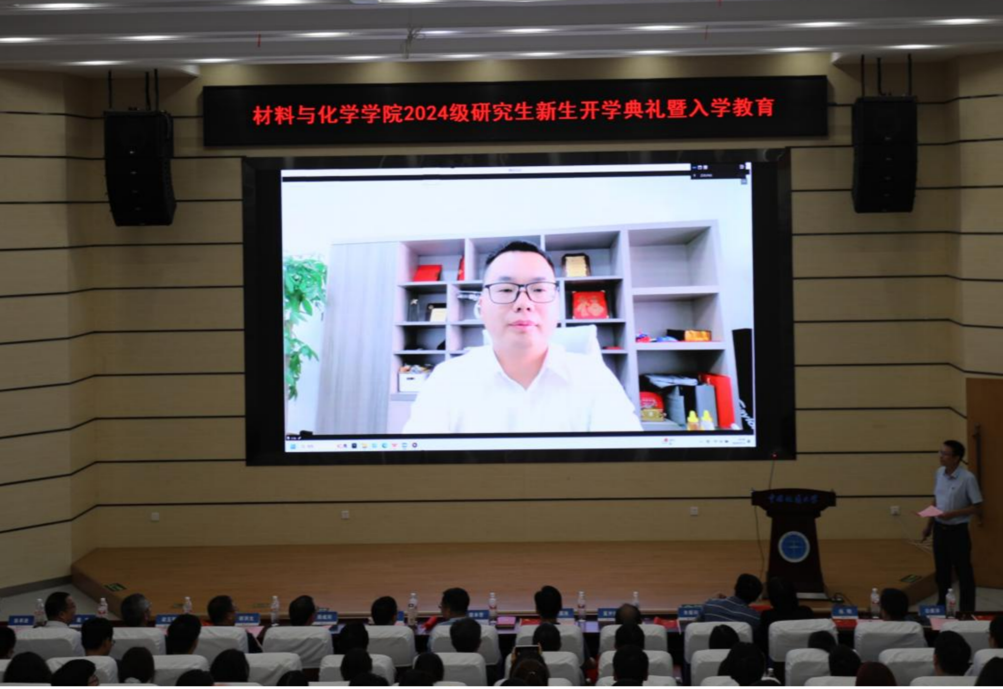 校友代表、合源锂创(苏州)新能源科技有限公司董事长刘敏发言。他分享了自己在校学习及创业的经历。他希望同学们在校期间打牢专业基础,坚定科研报国理想信念,充分融入国家新能源新材料的战略发展机遇中,积极探索,在教育强国建设的伟大征程中奋力写下材化人浓墨重彩的一笔。