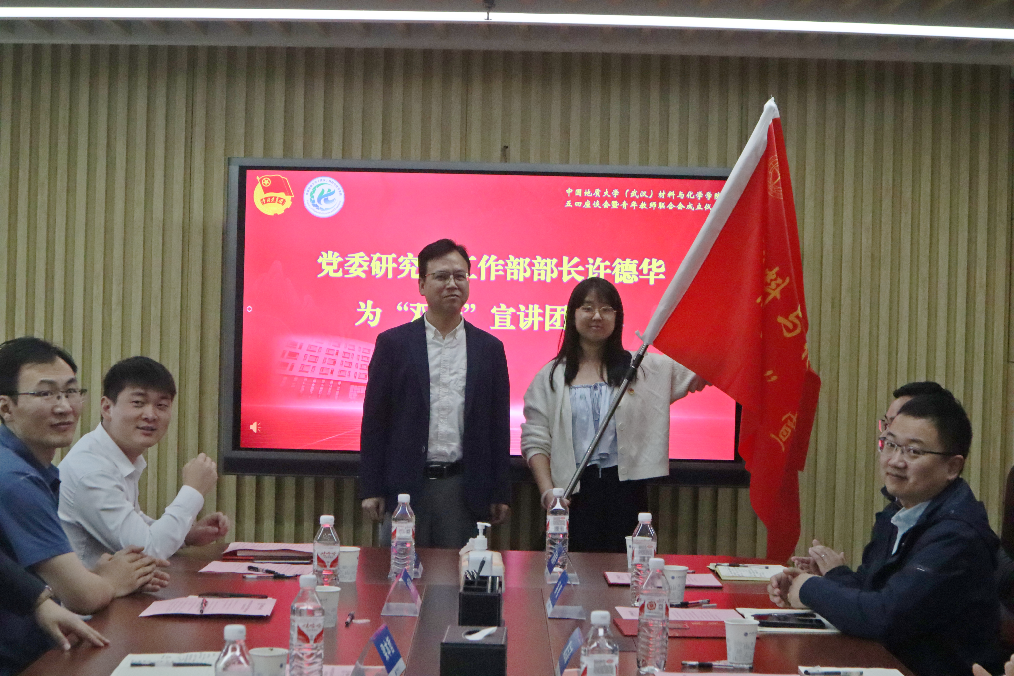 校党委研究生工作部部长许德华为“双新”宣讲团授旗,并讲话。他指出近年来韦德体育官网