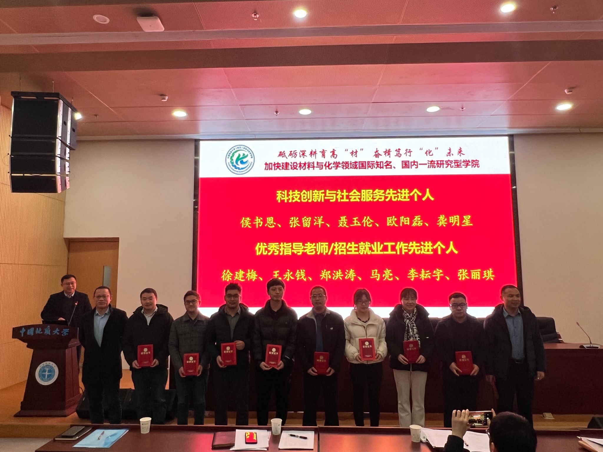 会议举行表彰活动。经各三级单位推荐、学院党政联席会研究,对一年来在党建工作、宣传工作、科技创新、社会服务、人才培养、实验室建设等方面表现突出的个人给予表彰奖励。