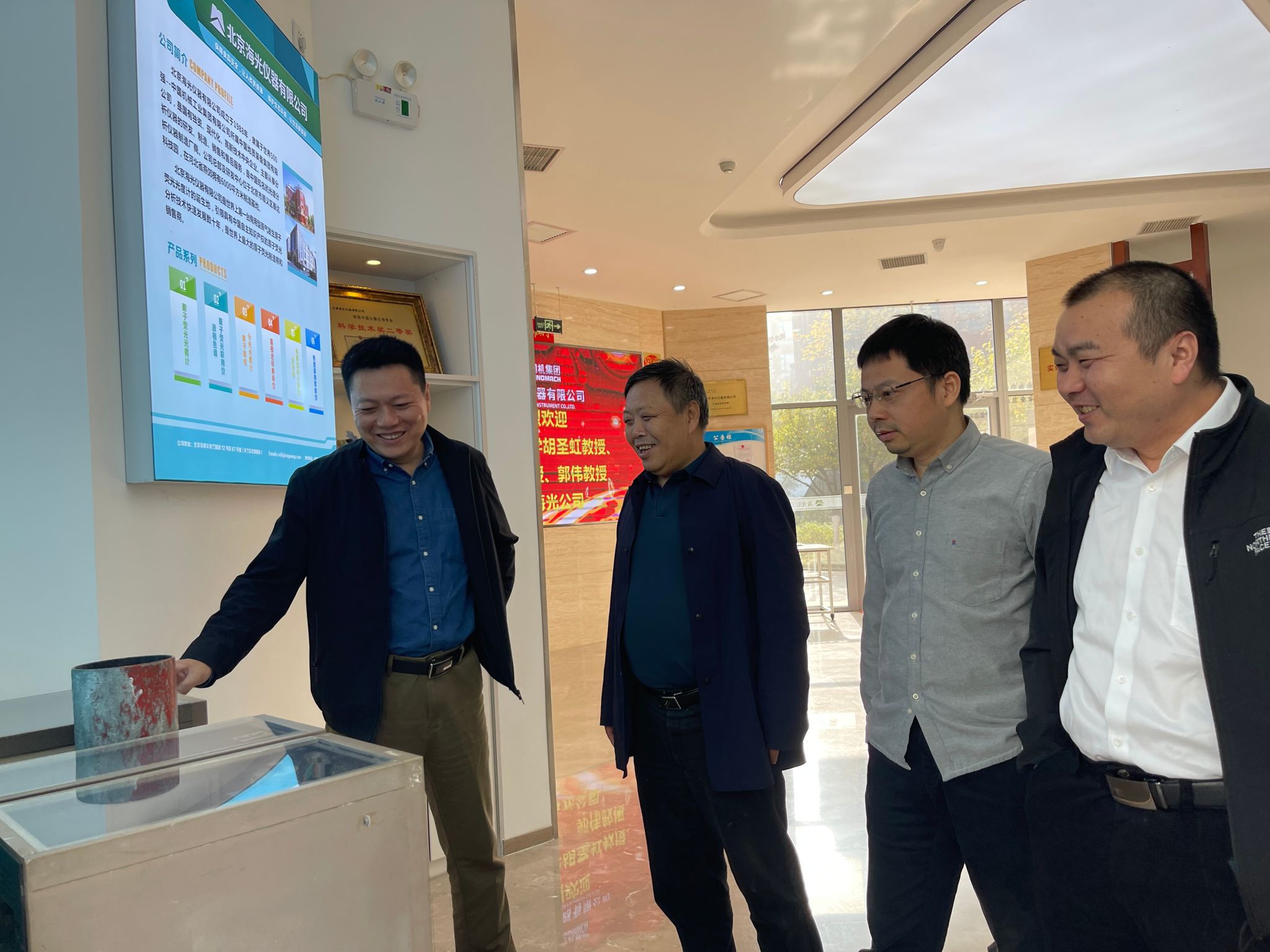 11月1日上午,海光公司总经理刘海涛等热烈欢迎胡院长一行来访交流,详细介绍了公司的发展现状。“海光公司”源于北京地质仪器一厂,现隶属于中国地质装备集团,是国有独资、高新技术、现代化中央企业,主要从事分析仪器的研发、制造、销售和售后服务,是我国知名光谱分析仪器制造商,其龙头产品原子荧光光谱仪(AFS)占据了全球30-40%市场份额。座谈交流期间,胡兆初详细地介绍了韦德体育官网