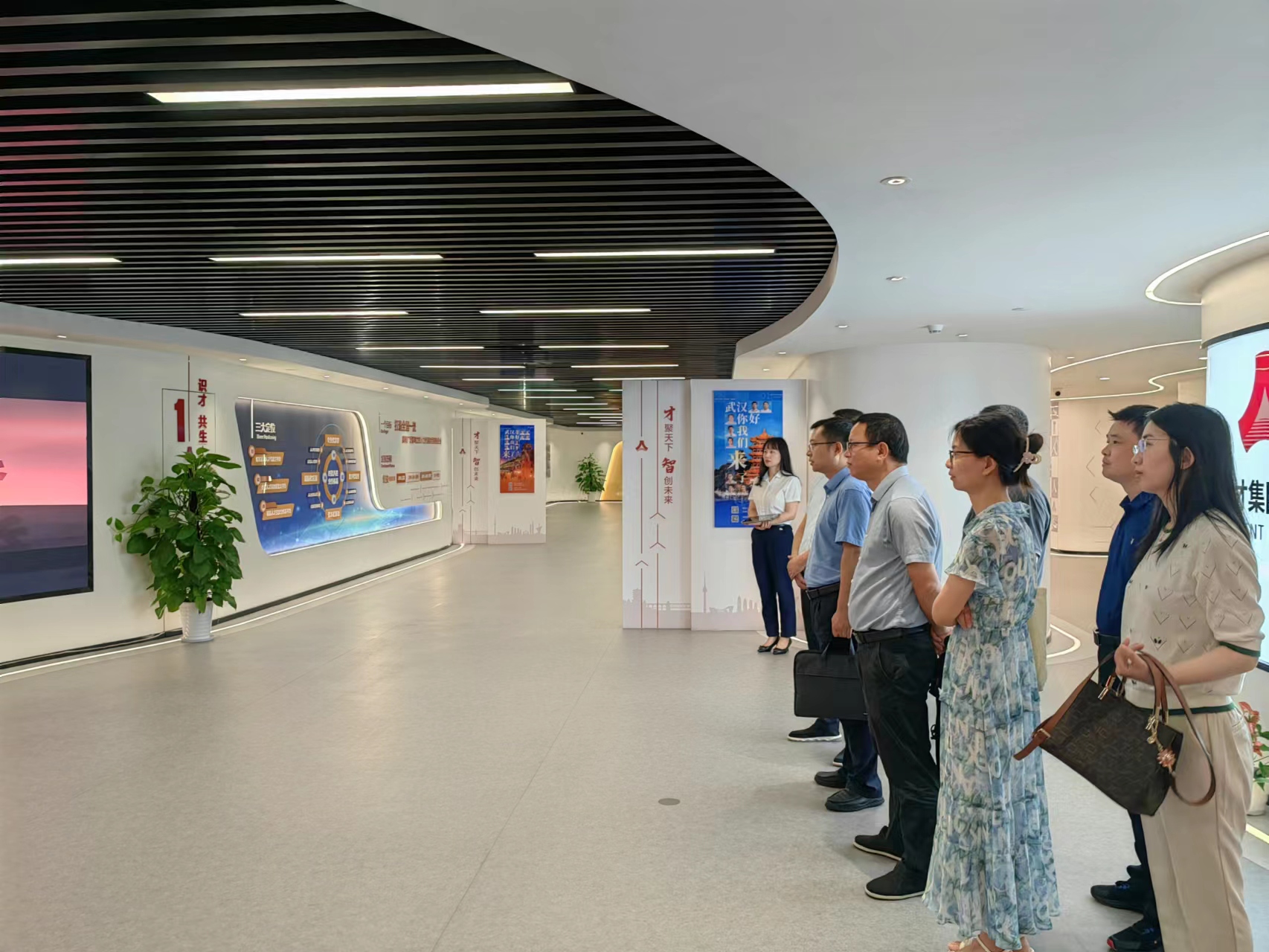 武汉人才集团总经理助理杜海坤热情接待调研组一行。杜海坤对母校老师前来调研考察表示衷心感谢和热烈欢迎,他带领调研组参观了集团文化展厅,并详细介绍了韦德体育,定位、运营现状等情况。