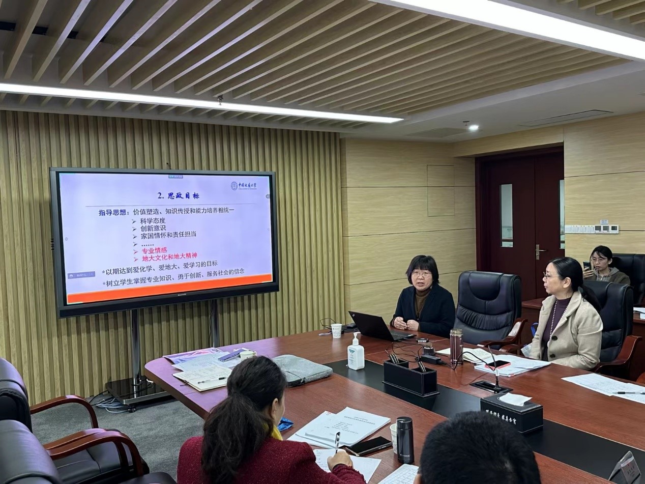课程思政示范课建设取得的成效,指出各课程负责人能充分挖掘专业课程的思政元素,尤其是具有地大特色的思政元素,形成了课程思政的思路、理念和方法,部分课程还建设了案例库,在课程思政的理论方面有所创新,值得推广借鉴。同时,宦教授也结合教指委正在开展的工作,对学院教师在思政案例规范化与优化、教学设计多元融合以及课程思政评价研究等方面提出了建设性意见。